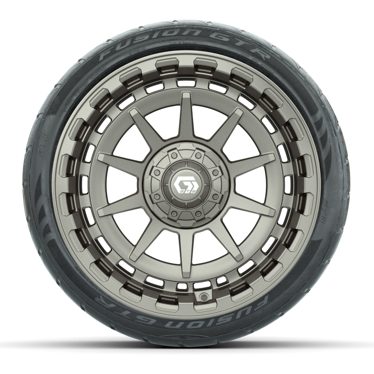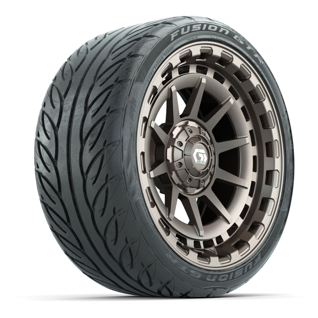 15-Inch Golf Cart Wheels: GTW® Barricade Satin Bronze Wheels with 22-Inch Fusion GTR Tires (Set of 4)