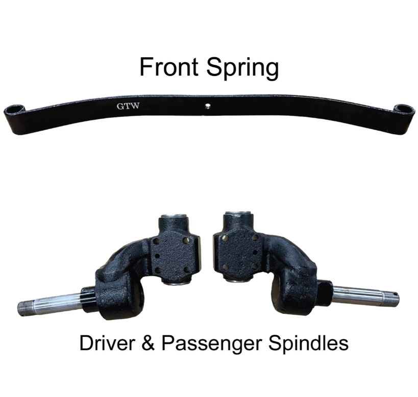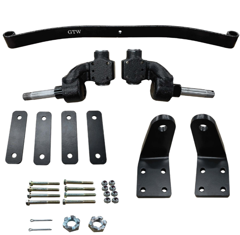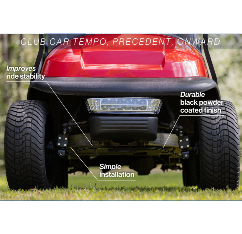 Finished in black powder coating, this 2” Spindle Lift Kit for the Club Car Tempo / Precedent / Onward gives you the flexibility to upgrade to larger tires and wheels without that tall, lifted look. The GTW 2” Spindle kit allows your cart to run up to 20” tires comfortably, and the front replacement leaf spring gives you additional riding stability. There’s no cutting or welding necessary as the front and rear lift pieces are included.