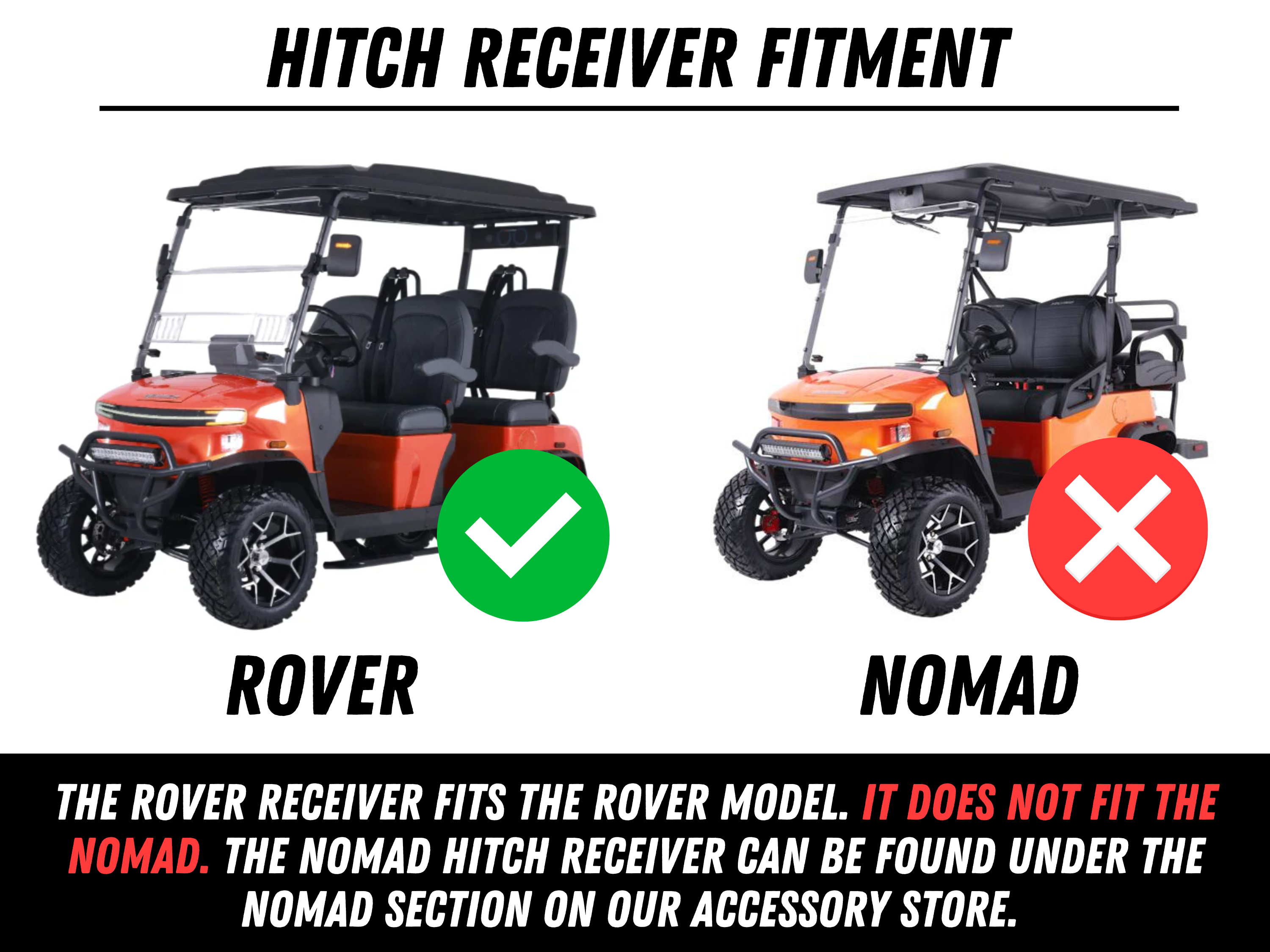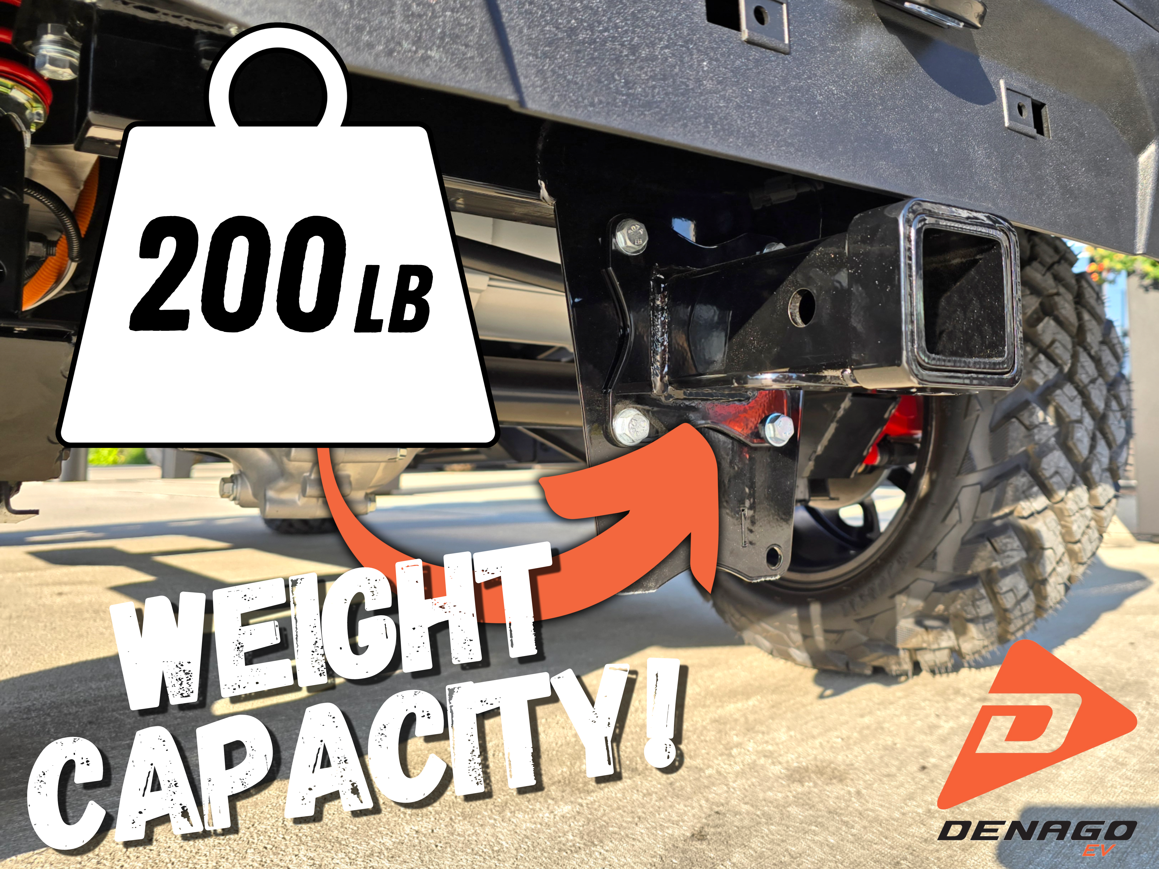 Our Denago Rover adjustable bolt-on 2" rear hitch receiver is a simple yet useful accessory that lets you put your Rover to work. Whether you're pulling a wagon around the garden, taking the jet skis to the dock, or hauling a cooler to your friends house, our receiver makes all of that possible.